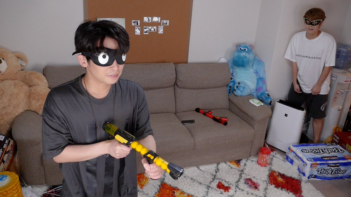 オモチャの空気銃を使って撃ち合いチョモ‼️