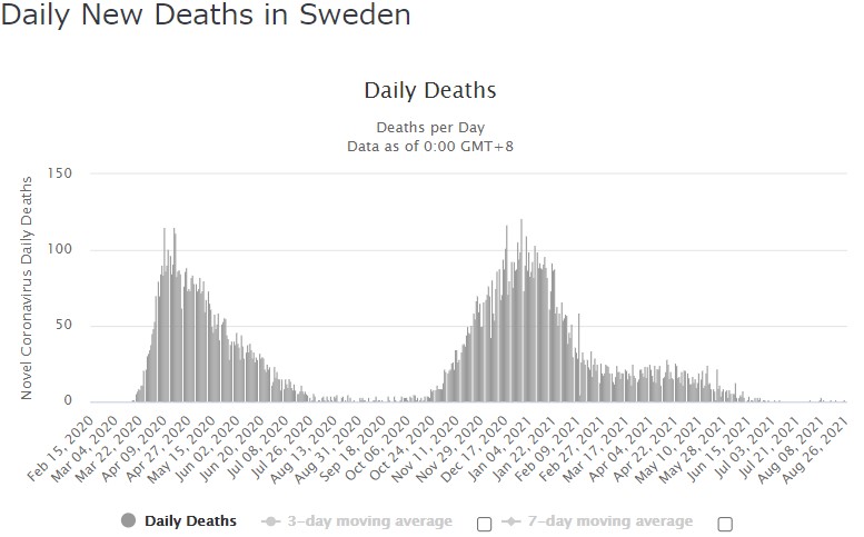 自然な免疫のあるスウェーデンでは死者はほとんど発生していない。 twitter.com/You3_JP/status…
