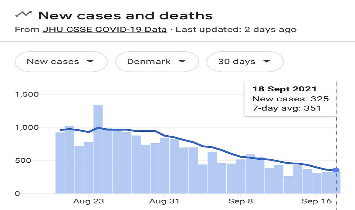 デンマークは全ての感染対策を止めたため、その効果がでて感染者数が激減した。
