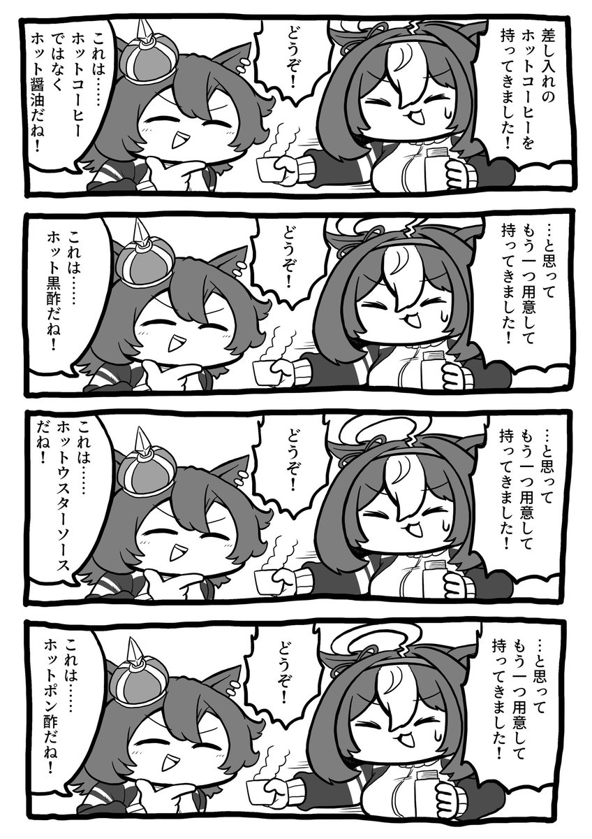 無事にカフェオレを飲めたけど火傷したメイショウドトウ