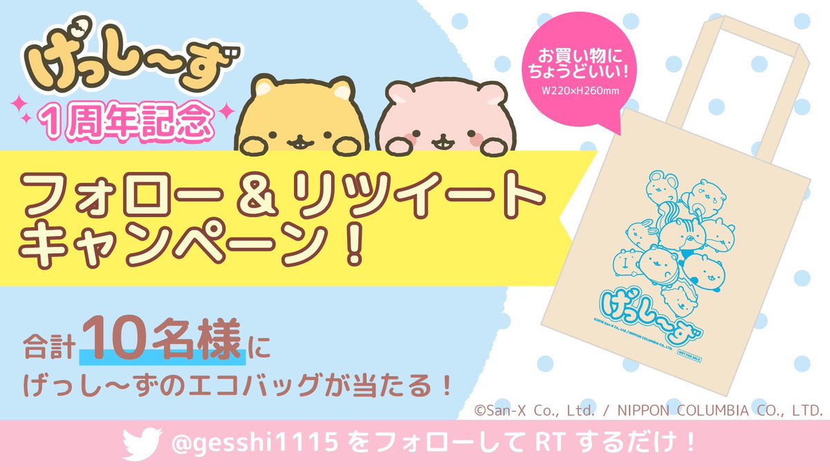 げっし〜ずのエコバッグを抽選で10名様にプレゼントします🎁