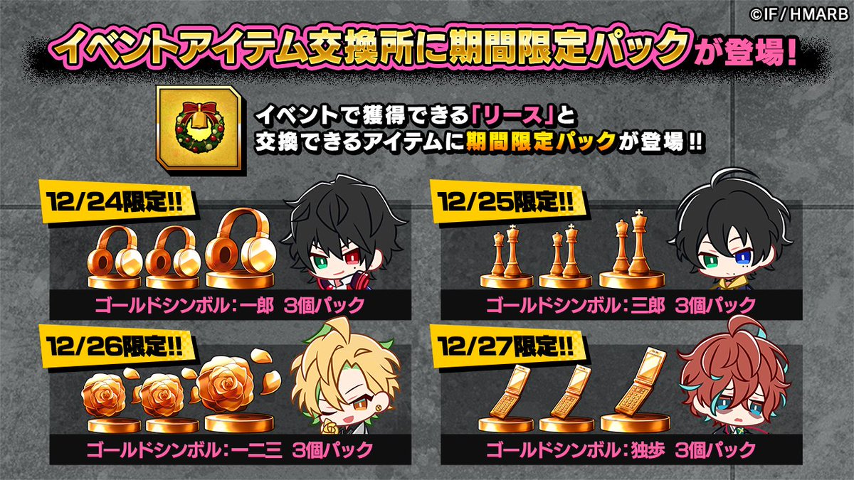 イベントアイテム「リース」500個で✨ゴールドシンボル3個のパック✨と交換できます🎅