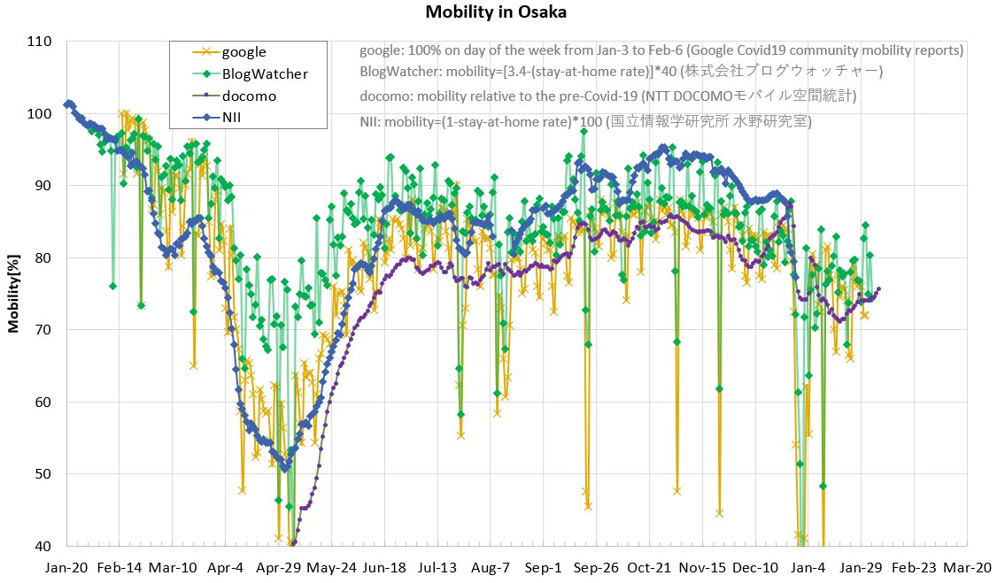このままだと3~4月に変異株による巨大な第4波が来て、全国的な緊急事態宣言発出に追い込まれます。ワクチンも検査拡大も間に合いません。変異株のRtを1以下に抑えるため、自粛率を現状の30%前後から60%以上に高める必要があります。今が分水嶺です。 twitter.com/ma_press/statu…