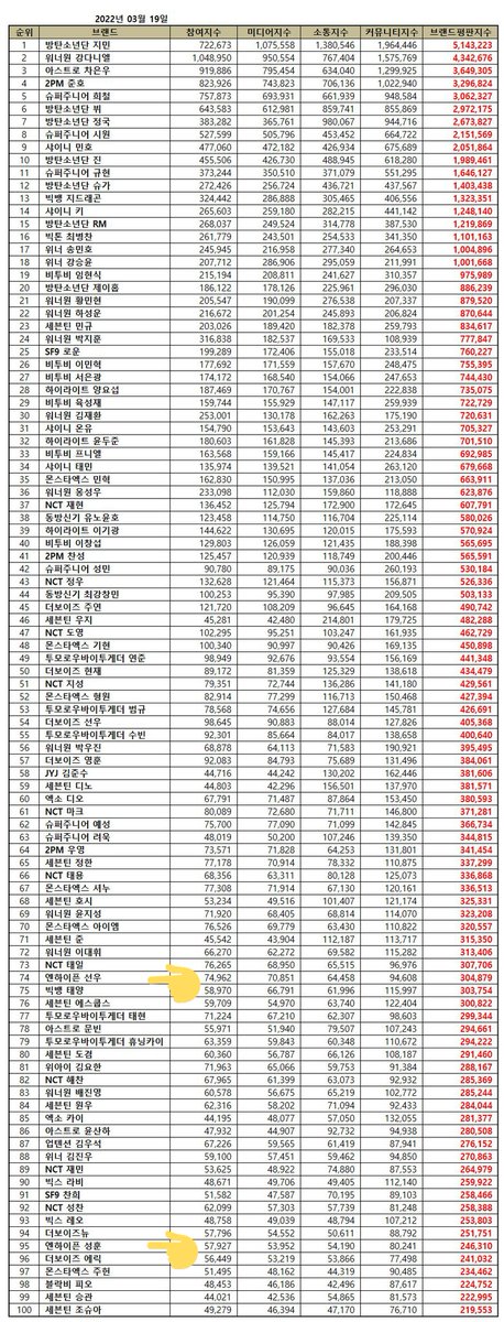 [INFO] 220319 ㅡ March Boy Group Individual Brand Reputation Ranking: