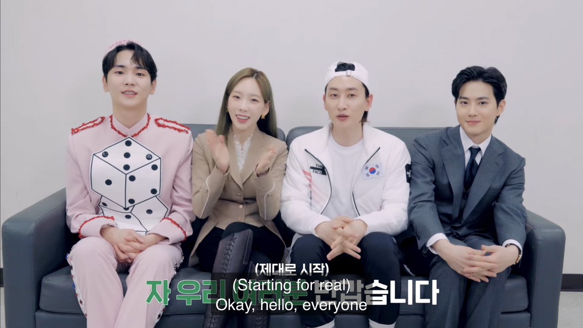 SUHO along with Key, Taeyeon, and Eunhyuk doing a reaction video for Onew’s new mv! 🎲