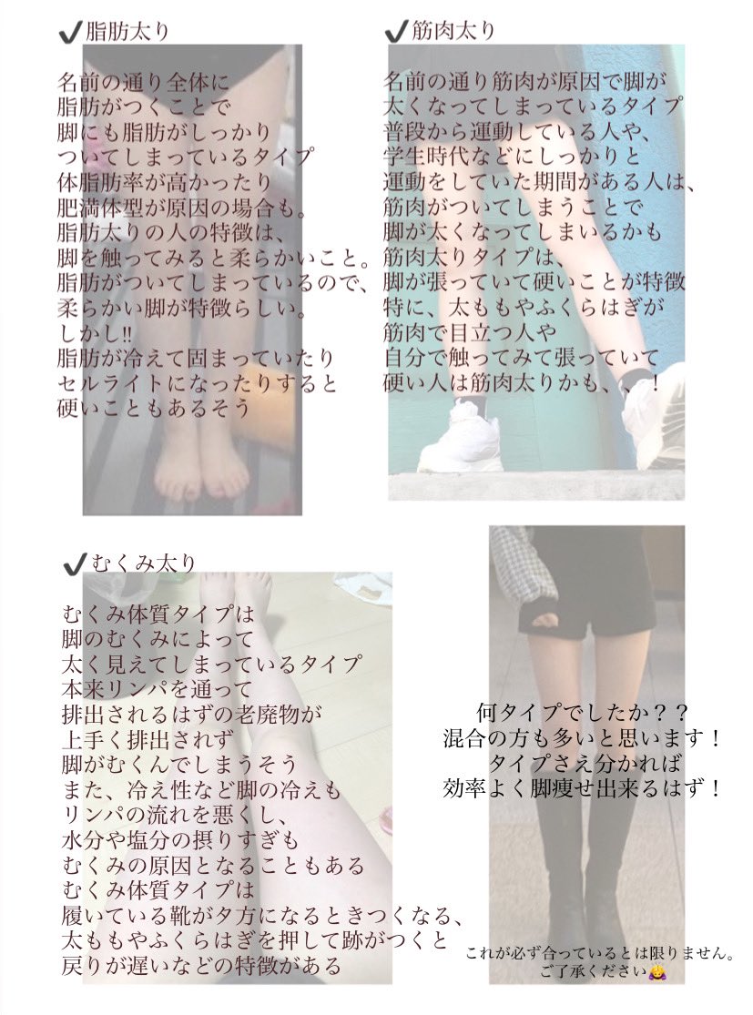タイプ別の脚痩せについてまとめました🕊