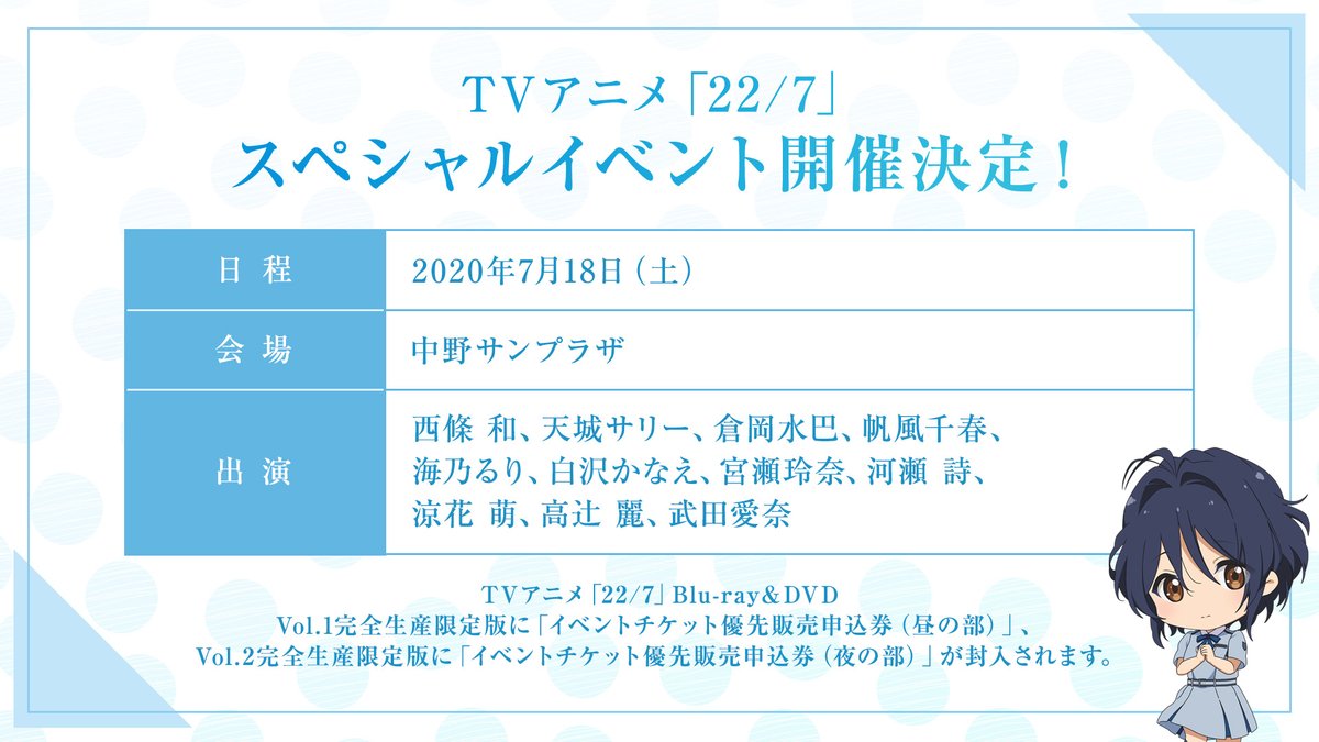 TVアニメ「22/7」スペシャルイベントの開催が決定しました‼️