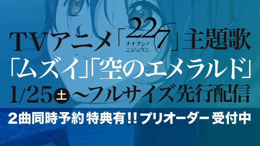 1/25(土)より、TVアニメ「22/7」の主題歌『ムズイ』『空のエメラルド』フルサイズ先行配信がスタート!