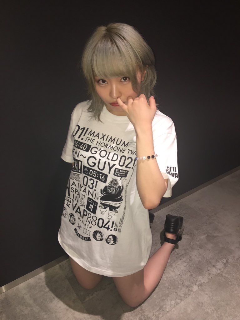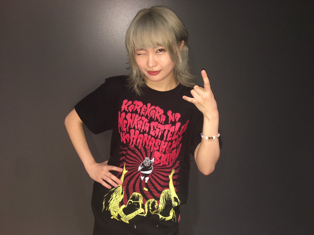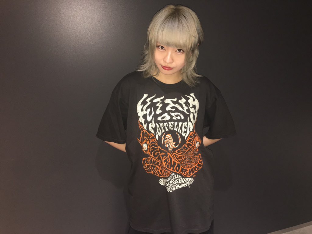 本店新グッズ売上促進部に急遽ヘルプバイトに来てくれた2号店のわかクン。明日から始まる本店のツアーで発売の新グッズの着用モデルをしてくれました🤘ドラムのオマキが「ずるーい!私もやりたかった」と案の定ブーたれたので次はオマキにもお願いするかなby本店りょ