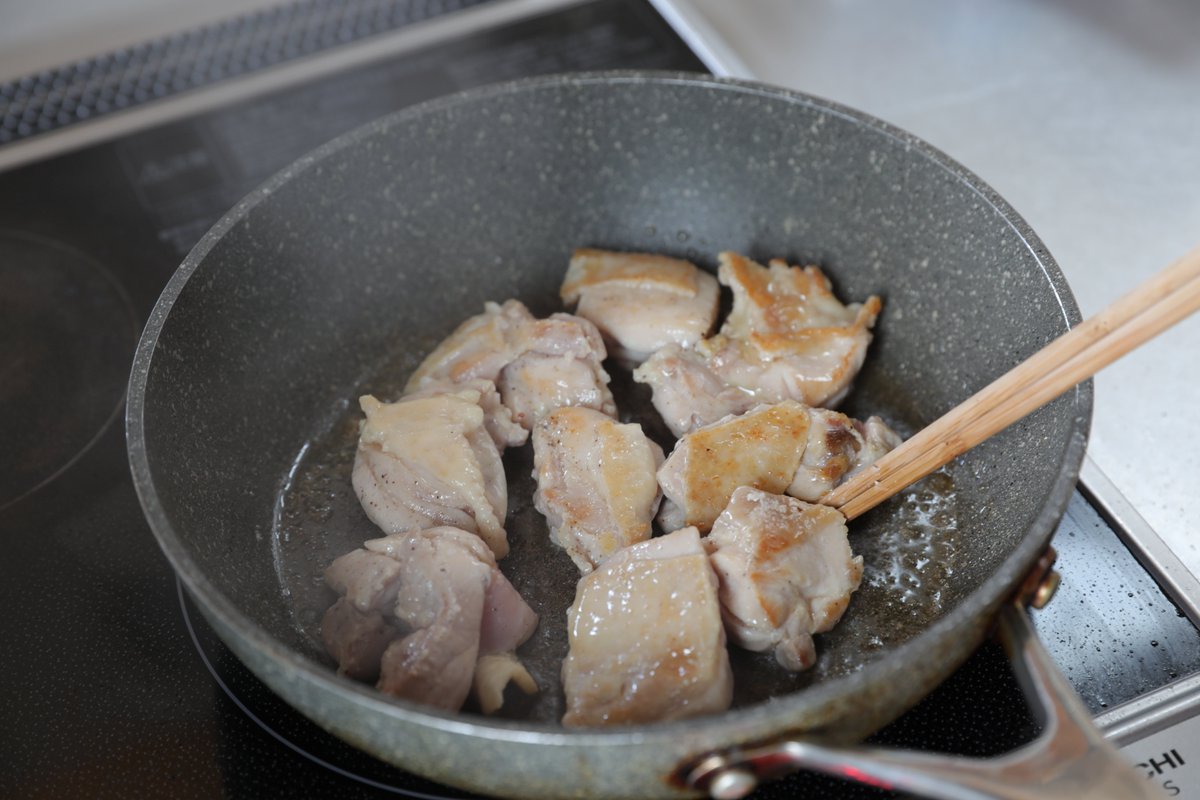 食べ過ぎ注意!鶏の旨みがたまらない! 寒い日にぴったりのこっくり味噌味でごはんがすすむ〜^^ 【鶏肉としいたけの旨味噌炒め】 フライパンにごま油、鶏肉を焼く。しいたけ、いんげん。合わせたみそ、みりん、酒、水、すりおろしにんにくを入れて炒める。皿に盛り、糸唐辛子。 詳しいレシピ👇