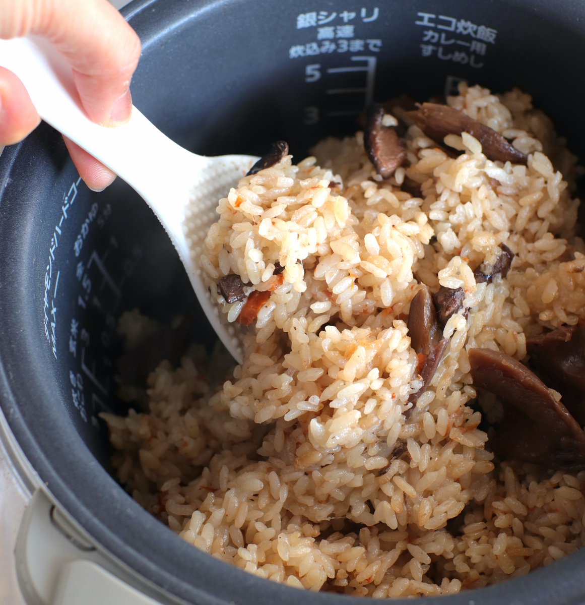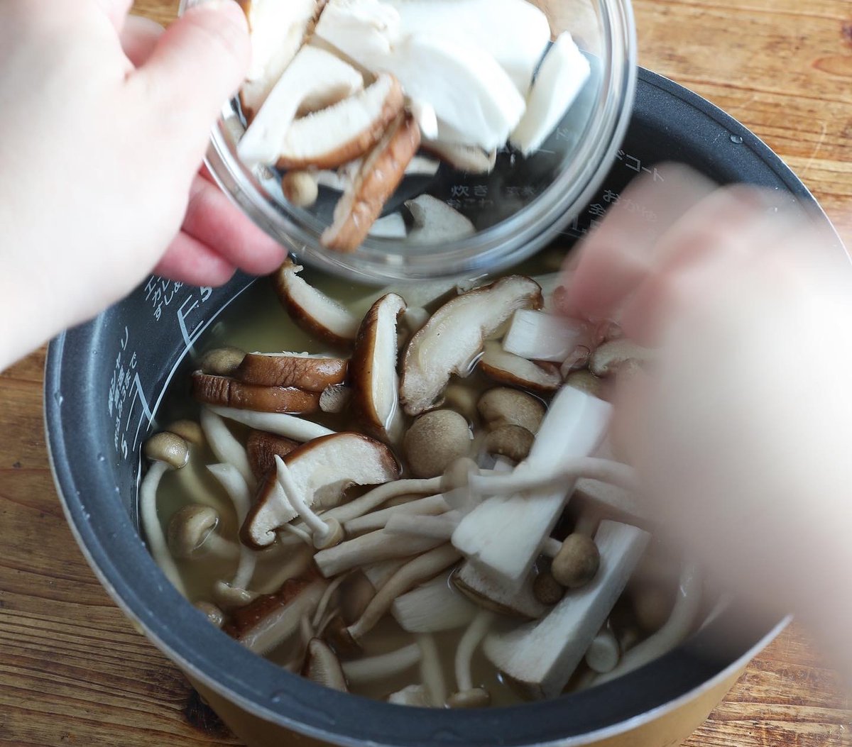 きのこの旨味が染み込んで・・! 仕上げの花かつおがいい味出してて、冷めてもうまい! 【おかかきのこの炊き込みご飯】 炊飯器に米としょうゆ、みりん、酒を入れ混ぜ、目盛りまで水。きのこを入れ炊飯。炊けたらかつお節。盛り付けて花かつお。しょうゆをお好みで^^ 詳しいレシピ👇