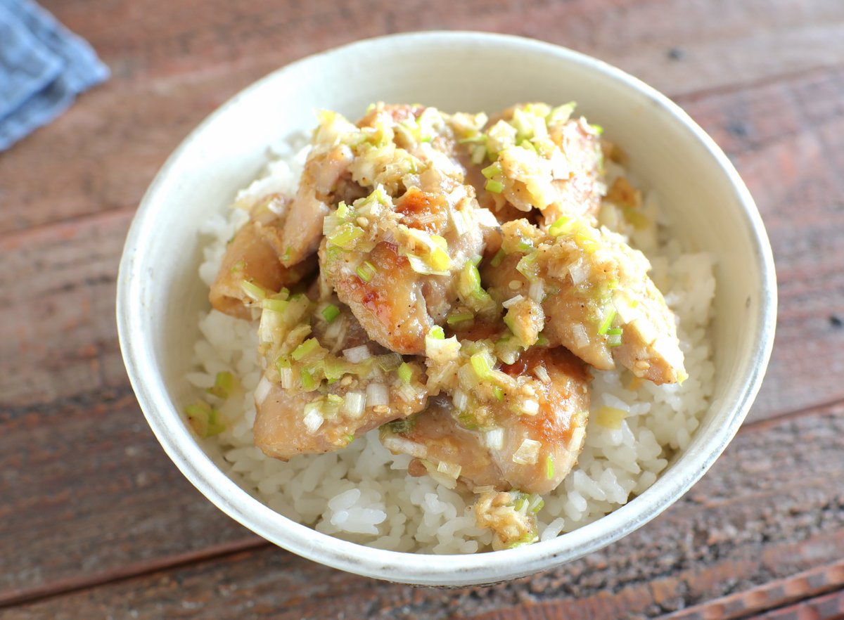 ごはんがすすむ丼は、 楽ちんランチの強い味方! 【塩麹鶏のねぎだれ丼】 フライパンで解凍した「鶏肉の塩麹漬け」を弱火で両面焼き、ふたをし3分蒸し焼き。すりごま、すりおろししょうが、砂糖、ごま油、酢を入れ煮詰め、みじん切り長ネギを加えて炒める。ごはんの上に盛る。 詳しいレシピ👇