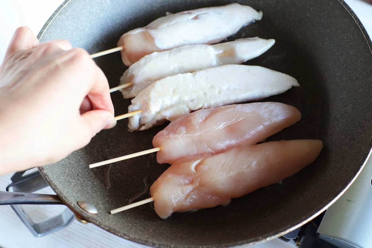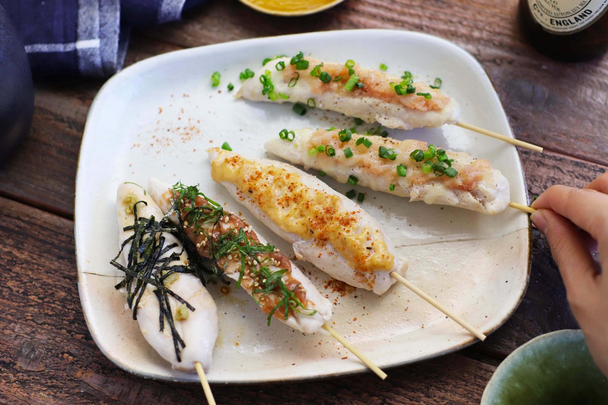 金曜夜のアテはこれで決まり! あっさりささみにいろんな味が合うね! 【おうち居酒屋!いろんな味で鶏ささみ串】 ささみに酒、塩を振り竹串を刺す。油を熱したフライパンでささみを両面3分ずつ焼き、フタをし弱火で2分蒸し焼き。火が通ったらお好みのトッピングを。 詳しいレシピ👇