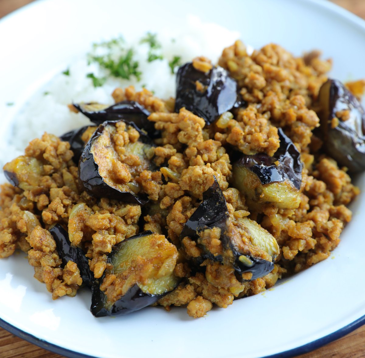ごろごろっとしたナスがたまらん! 簡単で絶品なんて嬉しい! 【なすのドライカレー】 フライパンに油、なす。フライパンに油、にんにく弱火。玉ねぎ、ひき肉、カレー粉、ケチャップ、ウスターソース、しょうゆ、酒。なす戻し、塩・こしょう。皿にごはん、カレーかけ、パセリ。 詳しいレシピ👇