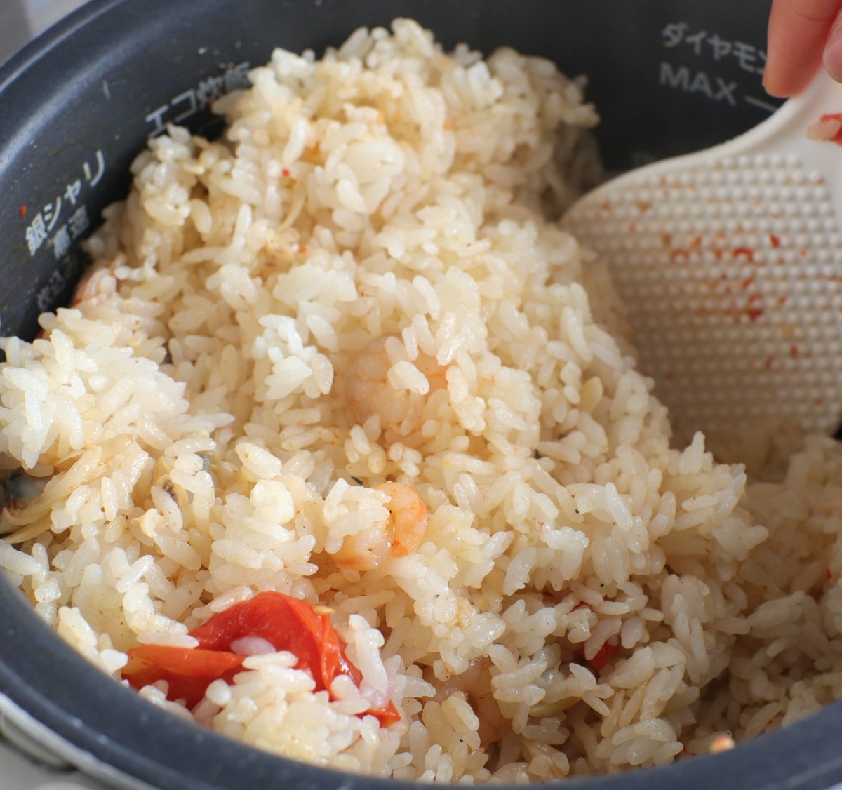 簡単で美味すぎて、気づいたらヘビロテしてる・・! アレンジもしやすい^^ 【シーフードピラフ】 米と水を炊飯器、シーフードミックス、ミニトマト、コンソメ、にんにくも入れて炊飯。炊けたらバター、塩こしょう、しょうゆを入れてさっと混ぜ、盛付けてパセリ。 詳しいレシピ👇