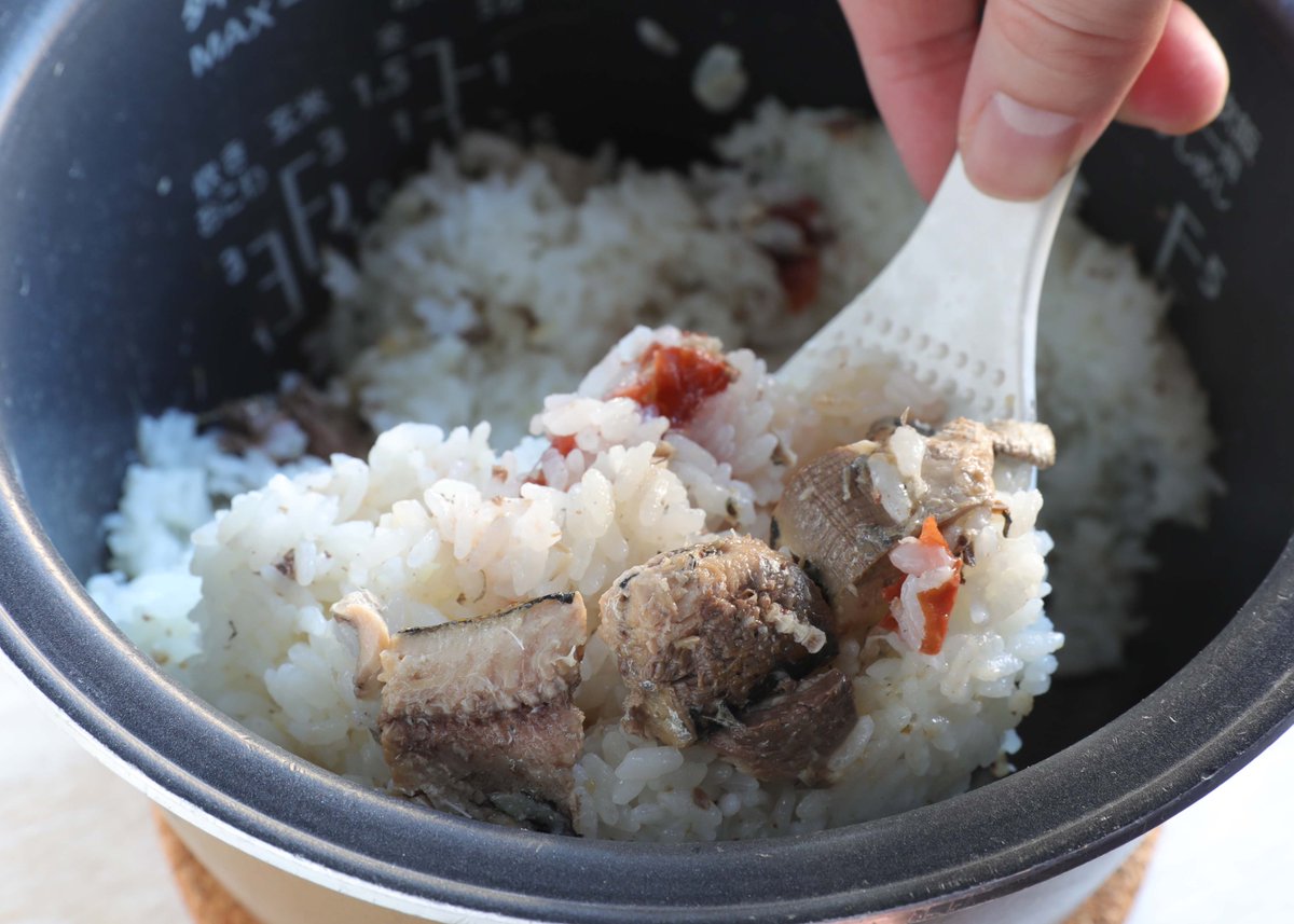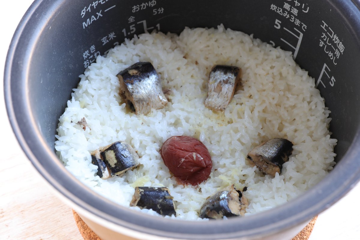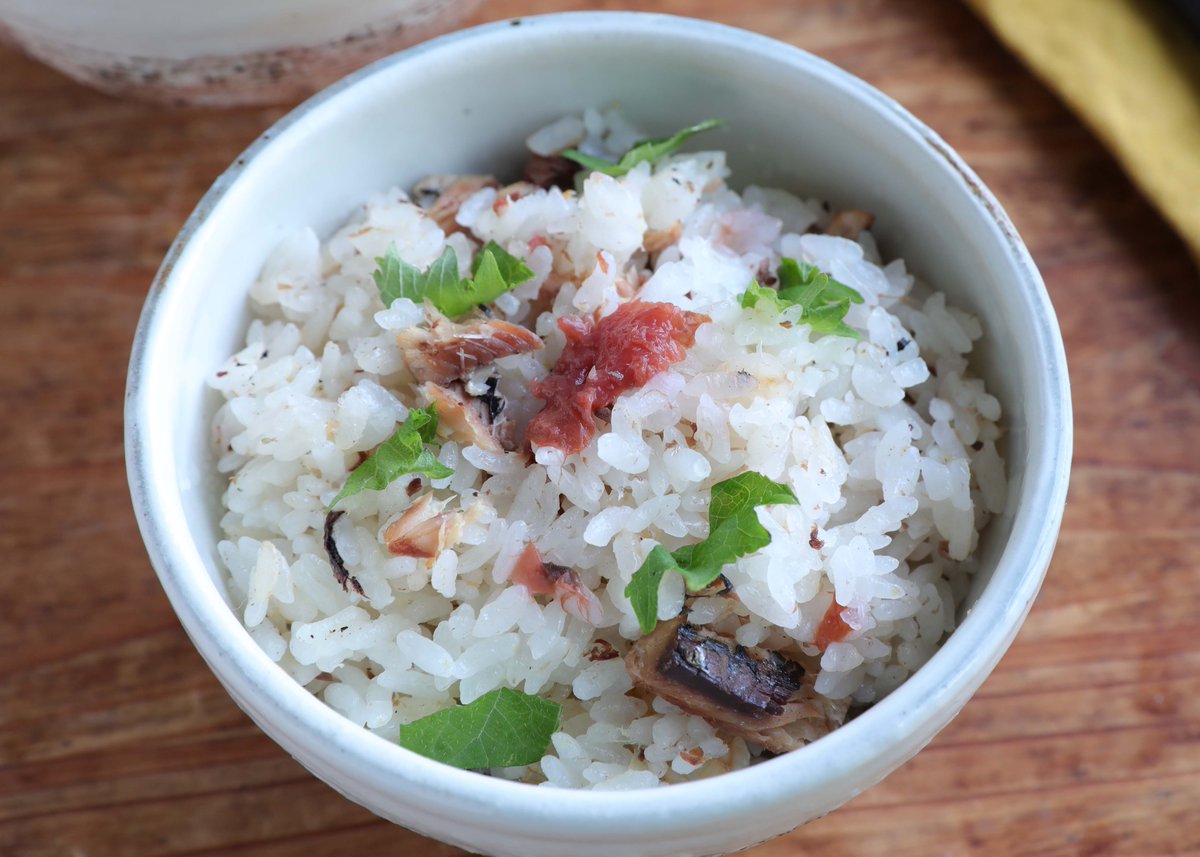 炊いてるそばからふわ〜っといい香り! 缶詰を使って楽々炊き込みごはん作っちゃお♪ 【いわし梅のしょうがごはん】 炊飯器に米、いわし缶の汁、酒。水を加え、上にいわし、梅、生姜のせ炊飯。混ぜて椀に盛り、大葉を添える。 缶詰の汁を使うから調味料はお酒のみ^^ 詳しいレシピ👇