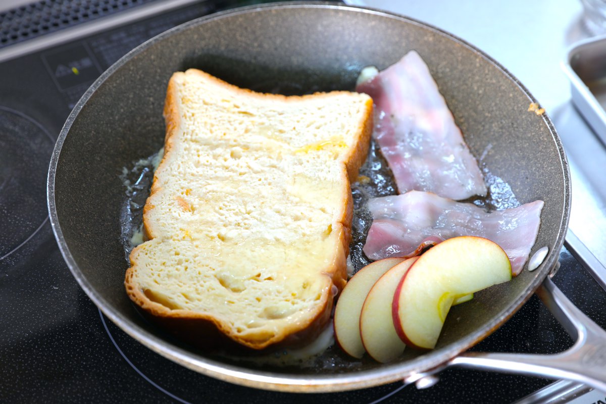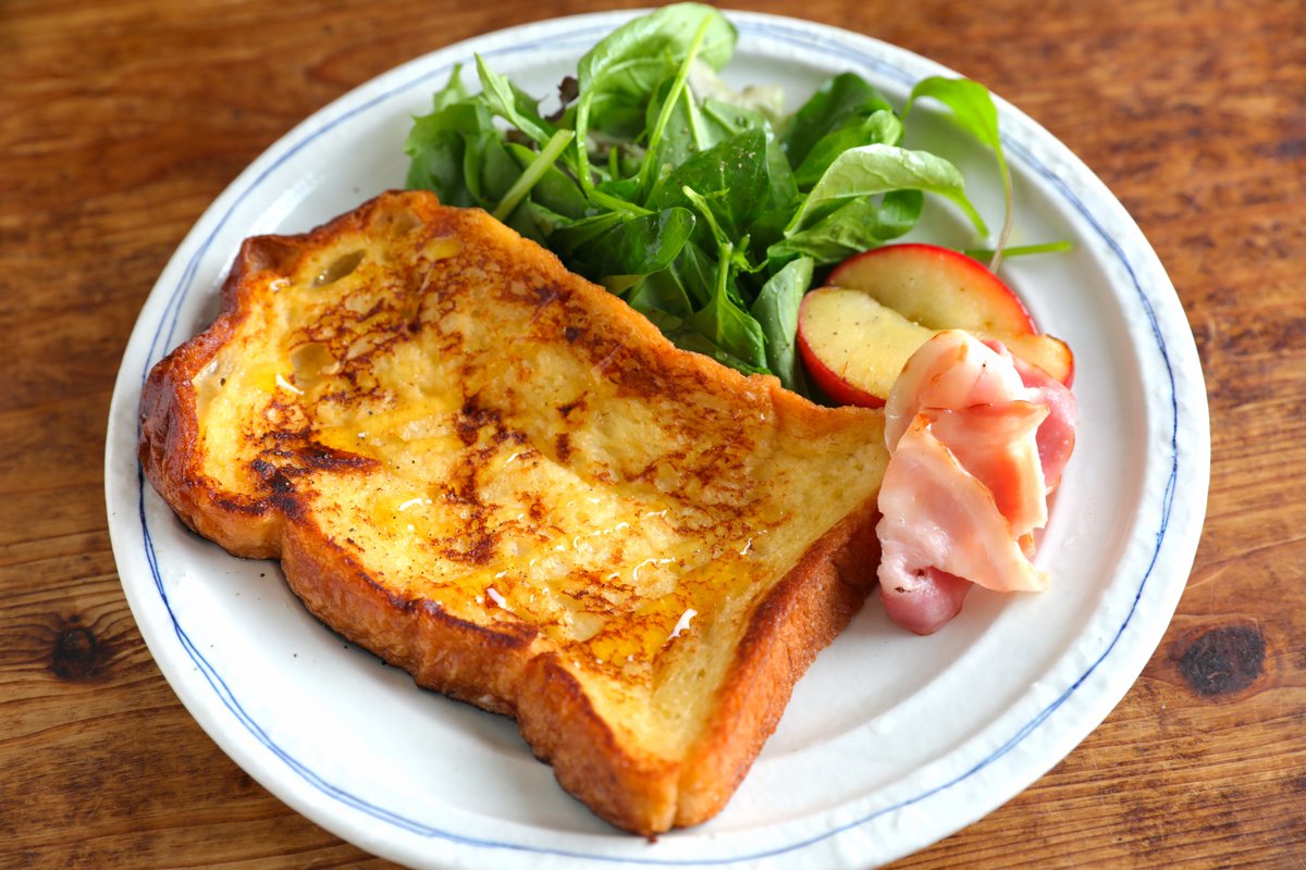 明日の朝ごはんはこれに決定!! ふんわりとろ〜り、満足感たっぷりな味わい^^ 【ふんわりフレンチトースト】 卵、牛乳、砂糖、塩をまぜ食パンにひたし、バターで両面焼く。皿に盛り、ベーコン、ベビーリーフ、りんごを添え、粗びき黒こしょう。 ワンプレートでカフェみたい! 詳しいレシピ👇