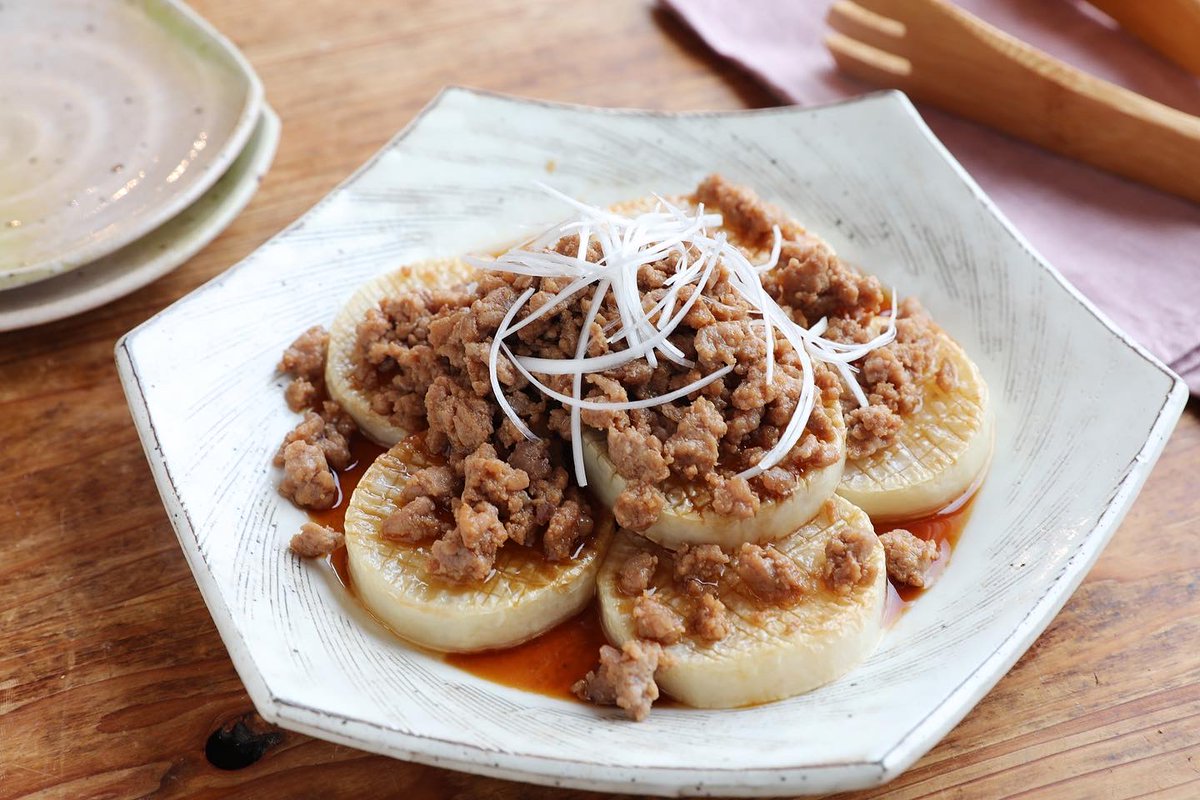 大根のレシピ、マンネリしてない? たっぷりそぼろで食べ応えあり! 【オイスターそぼろの大根ステーキ】 フライパンにごま油、大根を焼き、皿に盛る。同じフライパンにひき肉。オイスターソース、しょうゆ、酒、みりん、にんにくを加える。大根の上にそぼろ、白髪ねぎをのせる。 詳しいレシピ👇