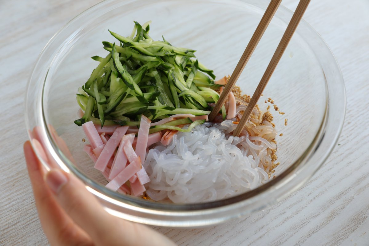 罪悪感なし! おつまみでも、夕飯でも大活躍しそう^^ 【しらたきの中華ごまポンサラダ】 しらたきを5cm幅に切り、耐熱容器に入れ電子レンジで加熱し、水気を切る。ポン酢、ごま油、白ごまを合わせ、しらたき、きゅうり、ハムを入れて混ぜ合わせる。 ハムは、ツナやカニカマでも◎ 詳しいレシピ👇