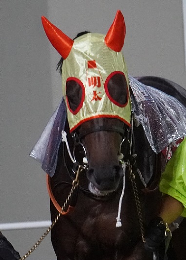 鎌倉記念に出走するメンタイマヨ。前回も着用したこのマヨネーズ色の勝負メンコで挑むそうです。→nankandamasii.jugem.jp/?eid=16420