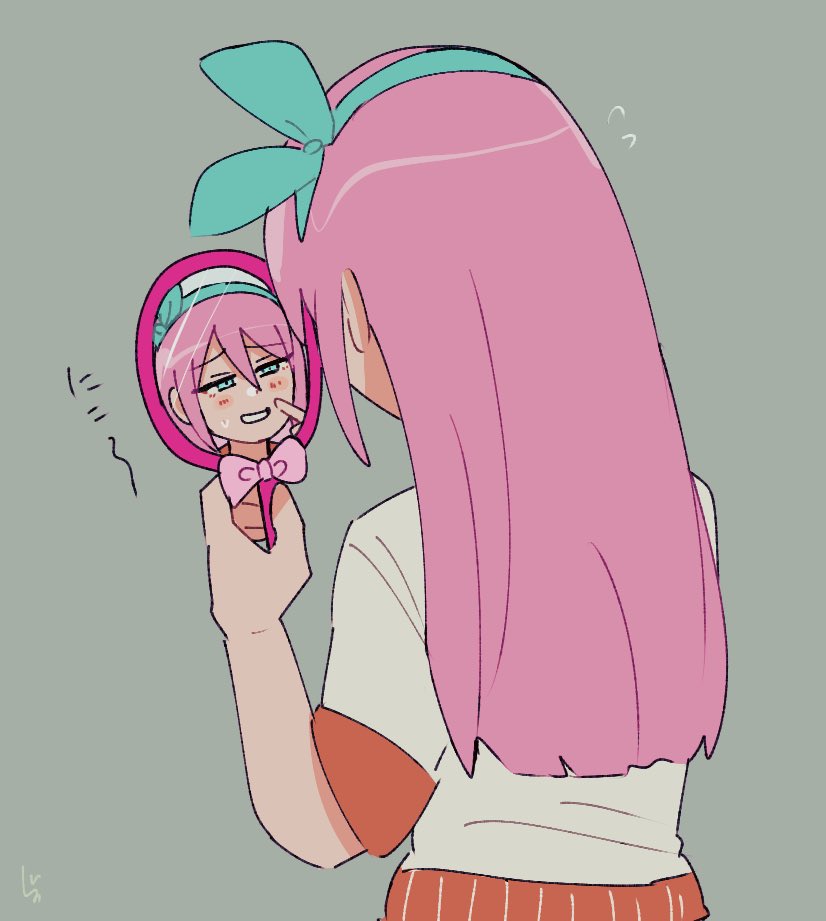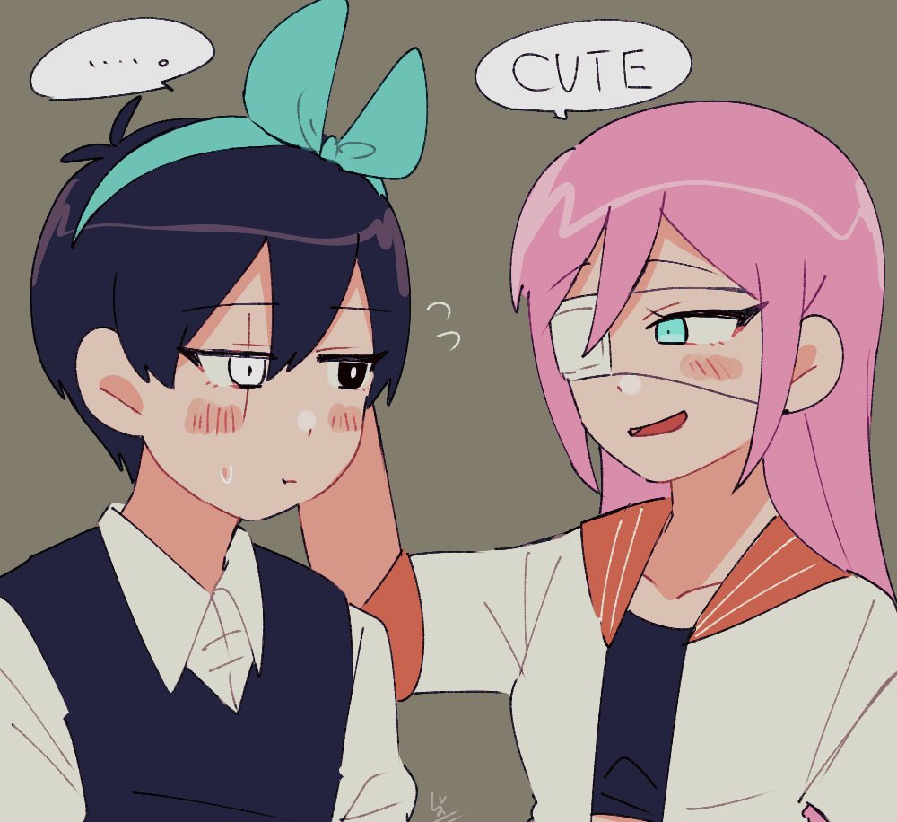 ■オーブリーちゃんのリボンをつけてみたサニー君とそれを見るオーブリーちゃん リボンと眼帯をこうかんこさせてみました リクエストありがとうございました❗️