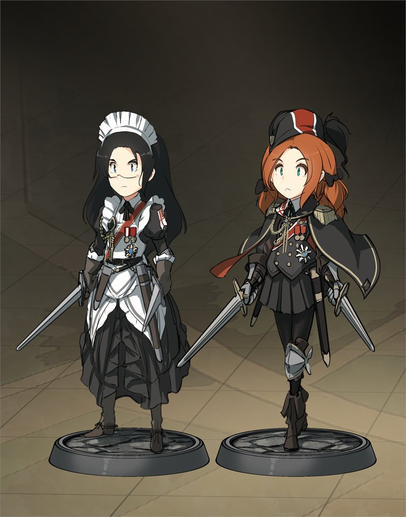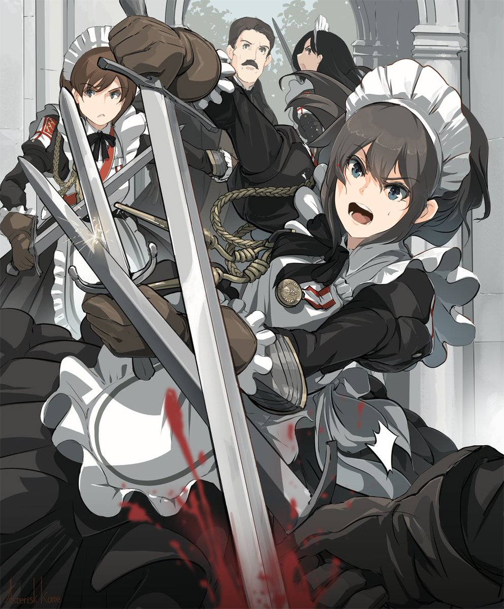 剣や鉄砲持ったメイドさんを描きました。