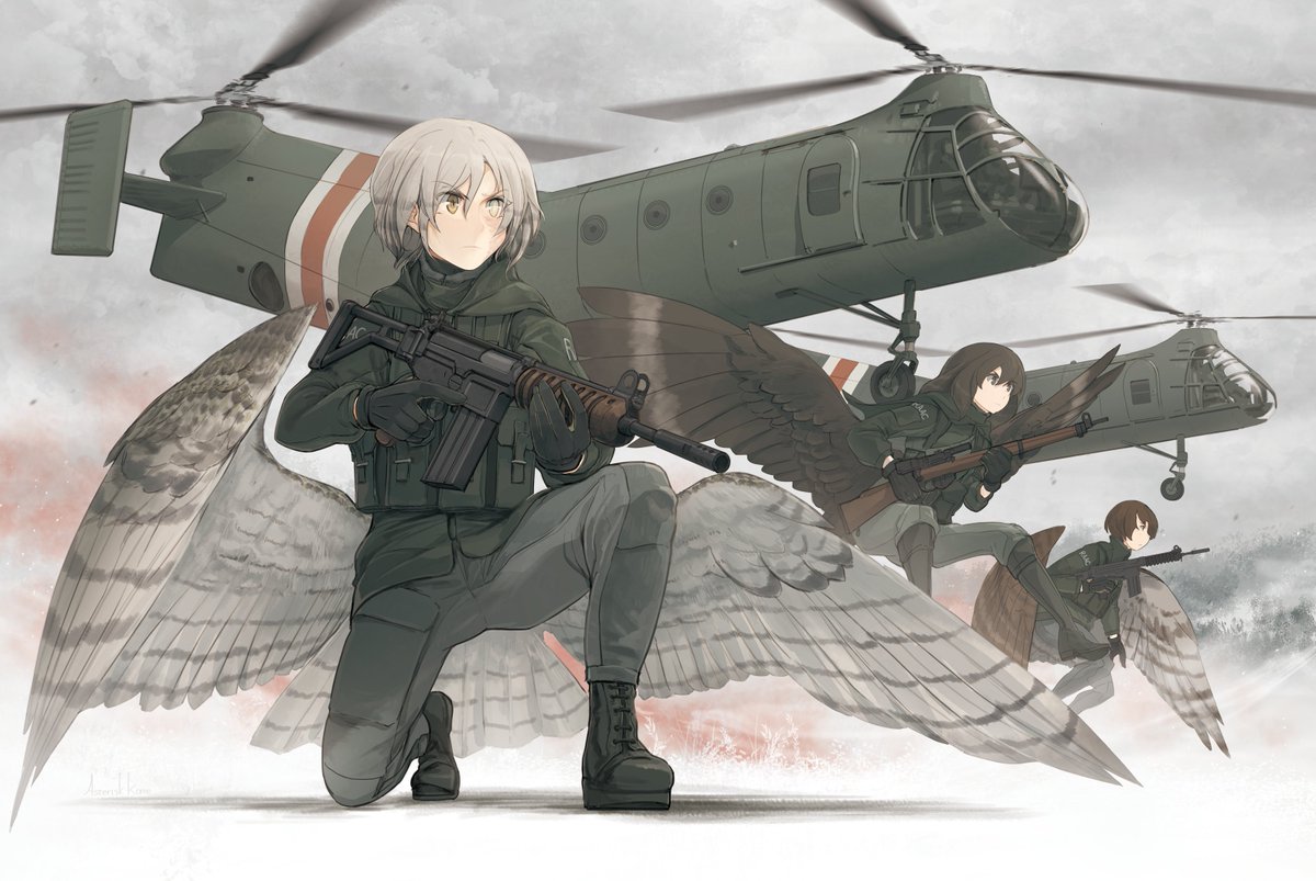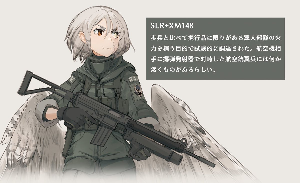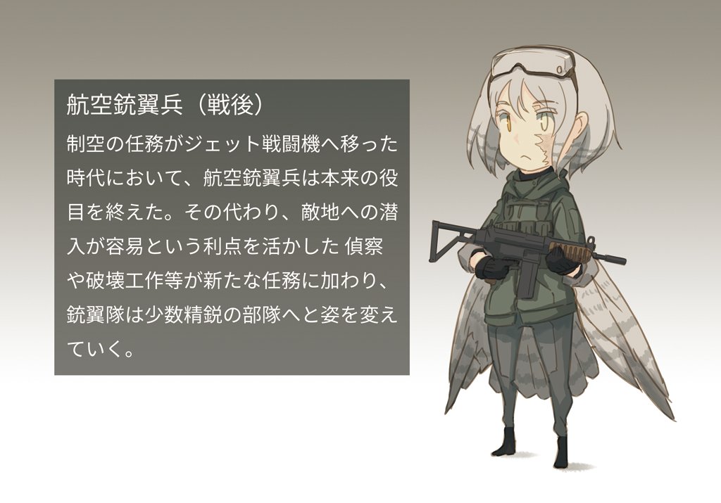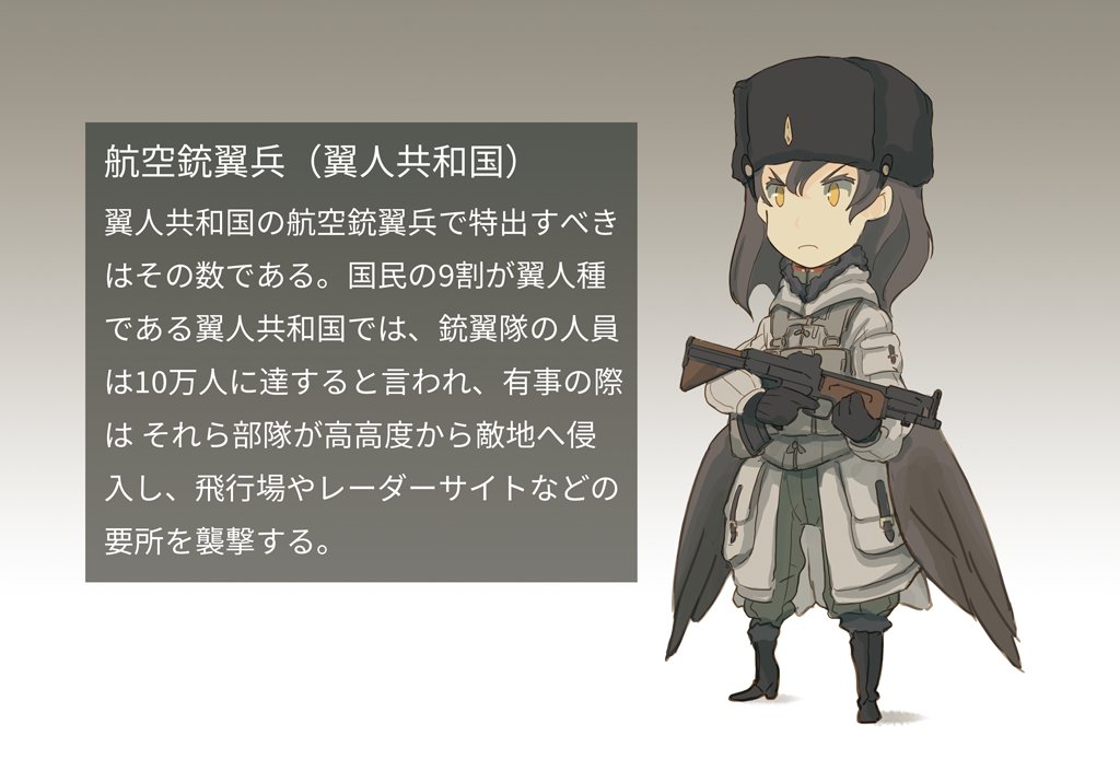 ここ経由なら、翼人共和国に対抗する組織に王国の兵器を流しても怒られにくそう…というお国の軍の銃翼兵のラフ。