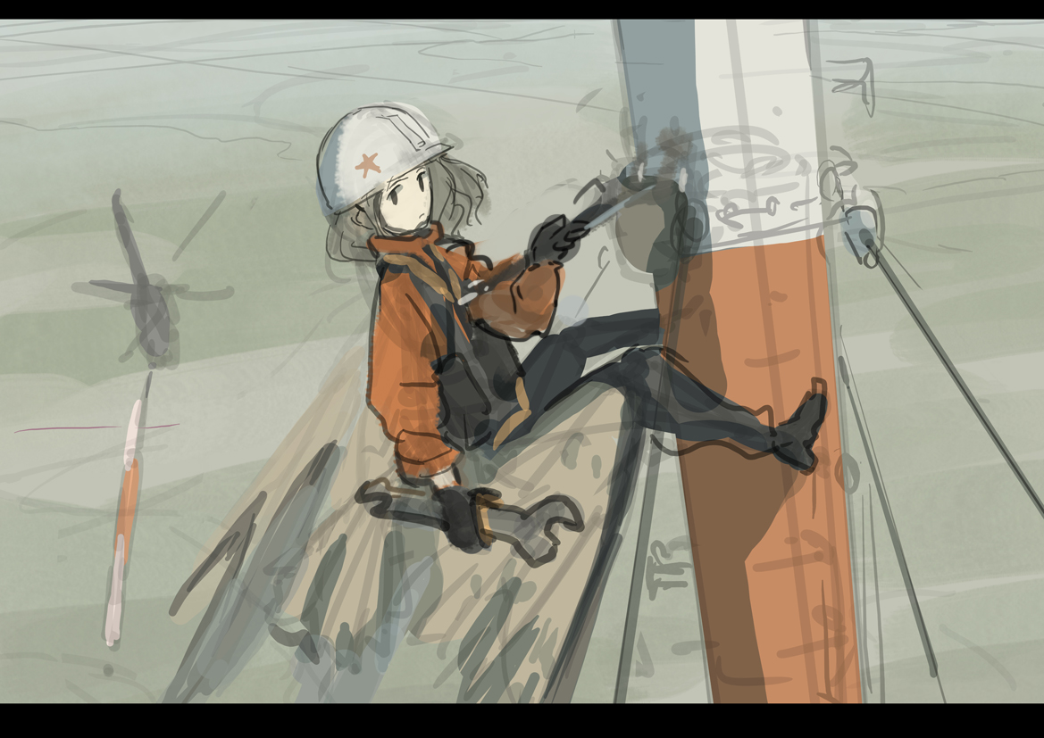 これは、栄えある祖国全土に国営放送を行き届かせるため、電波塔の設置に邁進する翼人労働者のラフ。