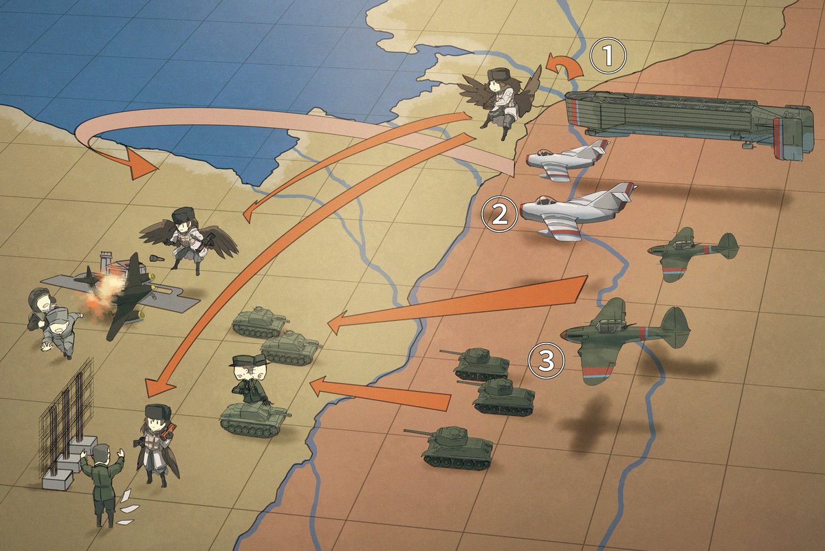 3:襲撃機の支援を受けつつ義勇陸軍部隊が前進