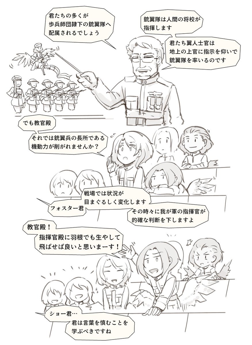 翼人に好意的な考えから、何かと苦労が続く王立軍将校