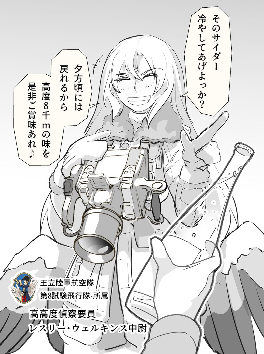 高高度偵察の道中を利用して飲み物を冷やしてくれるアネハヅルの翼人です。