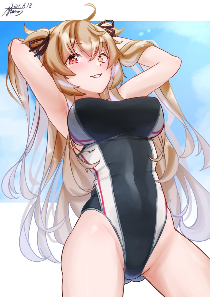 お題:オイゲンちゃんの水着を見て涼みたい