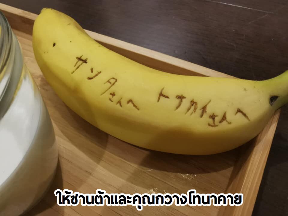 น้องบอกว่า คุณกวางคงจะกินนมจากแก้วลำบาก ก็เลยเตรียมจานไว้ เผื่อลุงซานต้าจะได้แบ่งนมในแก้วเทลงในจาน คุณกวางโทนาคายจะได้เลียกินจากจานได้สะดวก