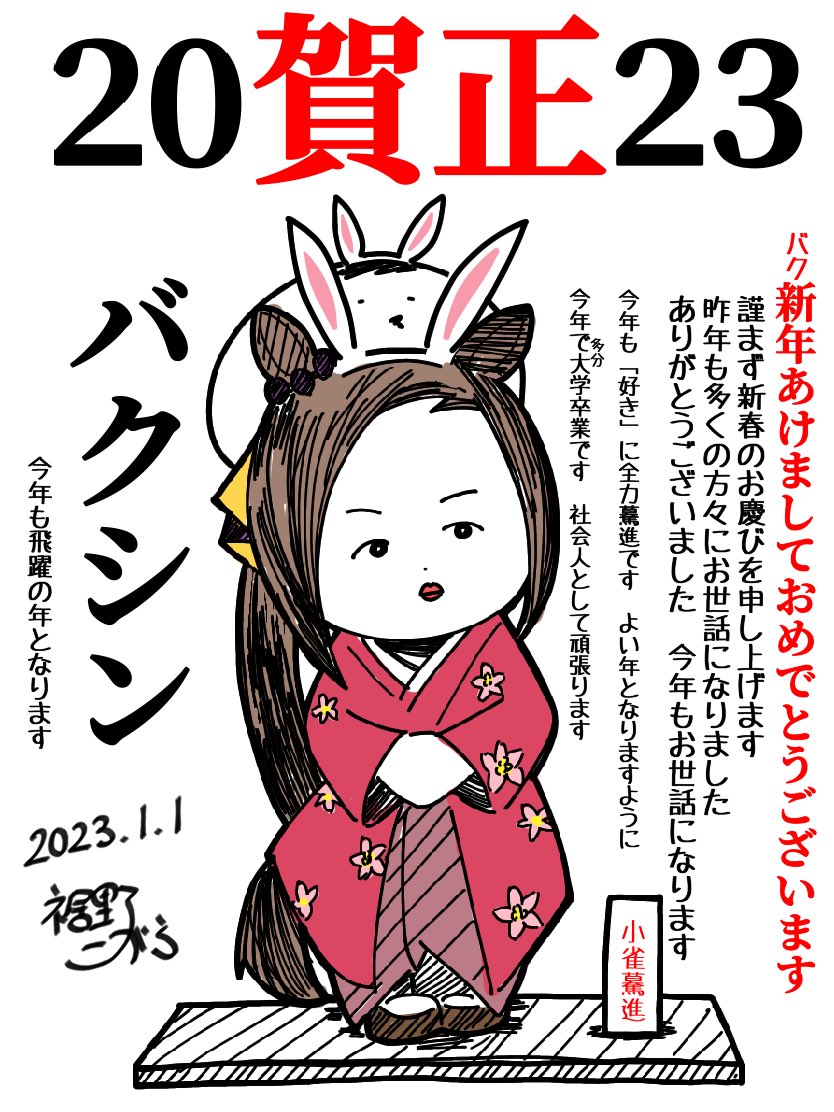 2023年 年賀状で筆始めです🐇