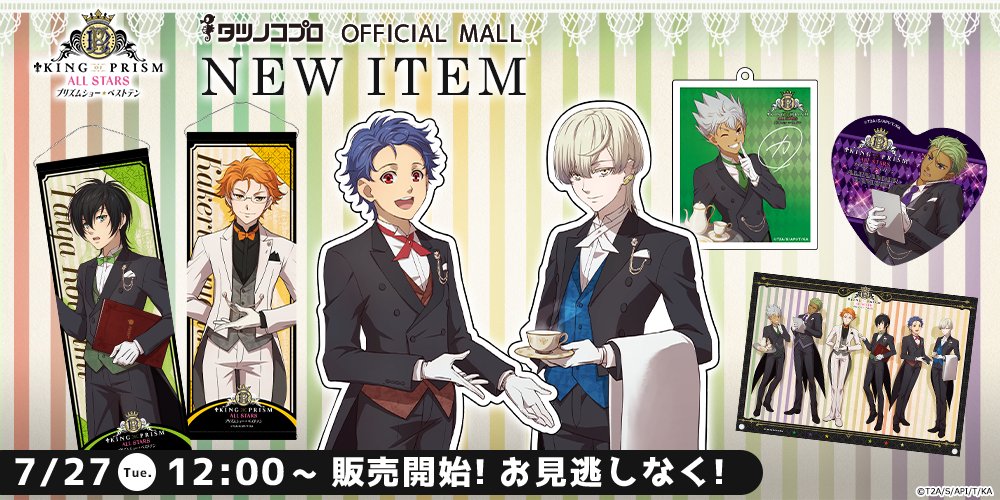 7/27(火)正午よりKING OF PRISM WEB SHOP👑にて『アクリルスタンド』や『半裁タペストリー』『B5アクリルボード』などを販売開始しました😘