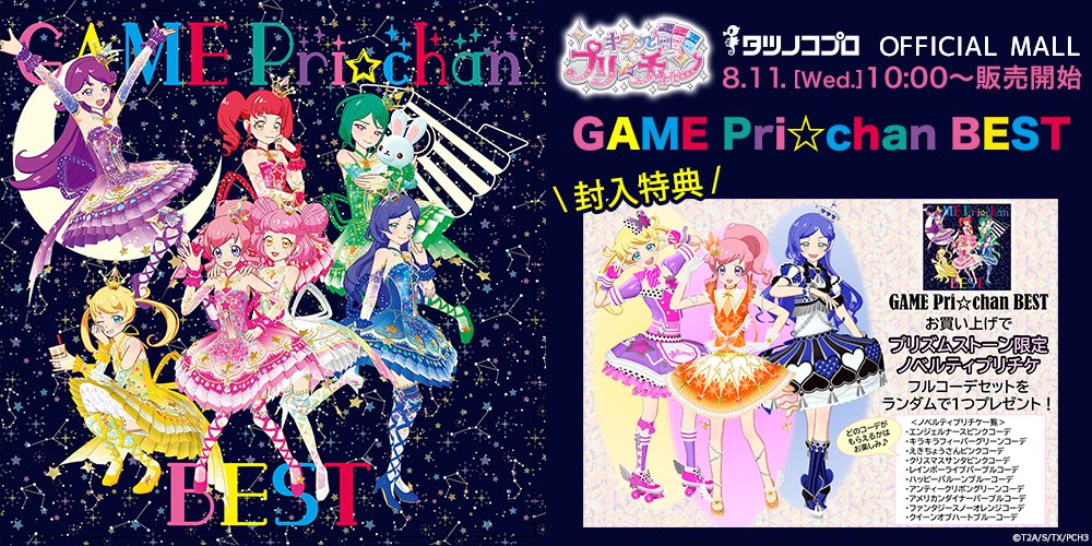 本日8/11(水)10時⏰より🎀PrismStone WEB SHOP🎀にて、『GAME Pri☆chan BEST』『プリティーリズム・レインボーライブ』グッズの販売を開始しました😍