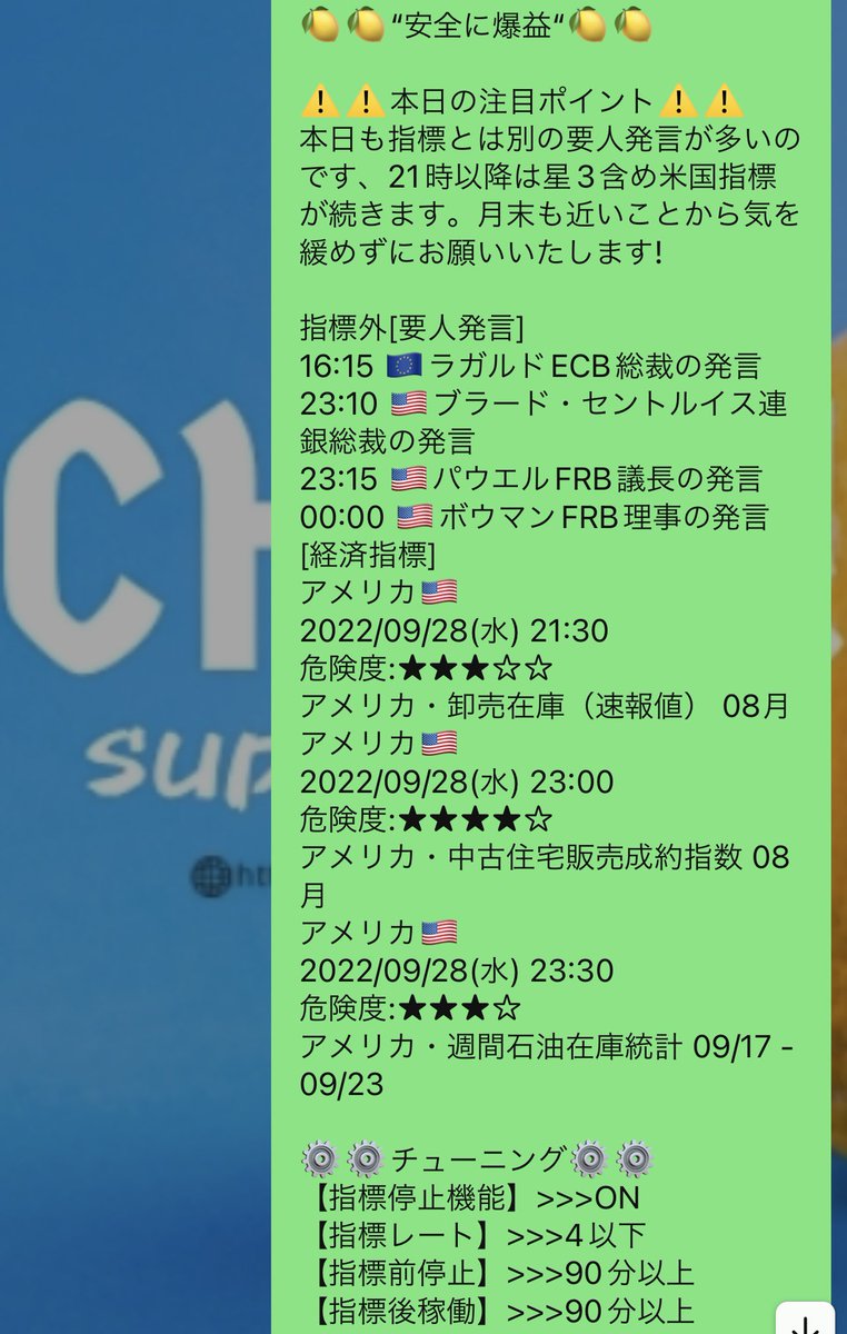 来週も日々の指標等に合わせた、EAのチューニング情報を毎日発信させていただきます💫