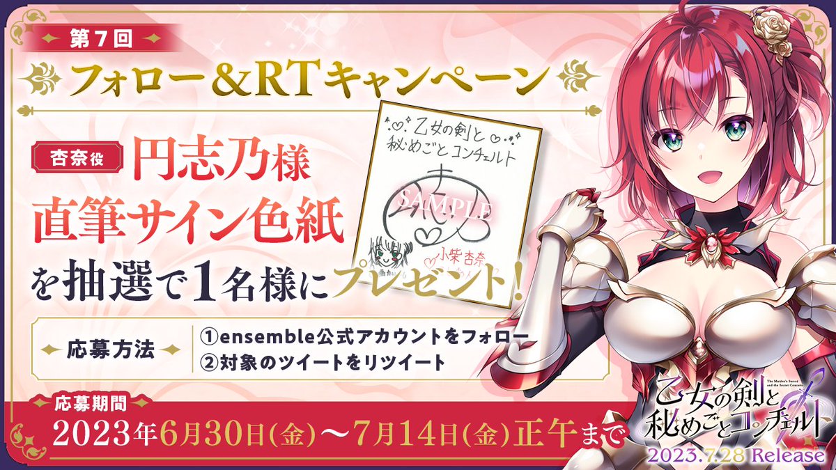 ensemble公式アカウントをフォロー&7月14日(金)正午までにこのツイートをリツイートすると、抽選で1名様に杏奈役 円志乃様の直筆サイン色紙をプレゼント!