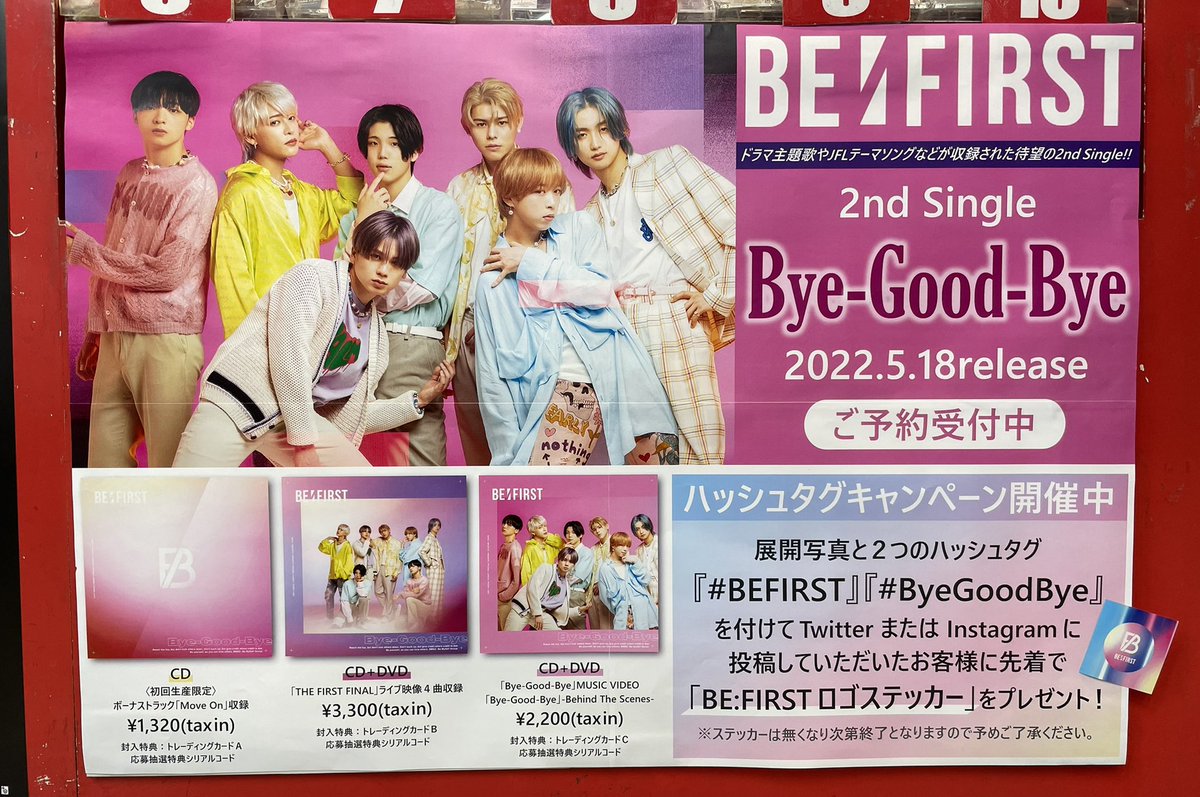 【BE:FIRST】2ndSingle『Bye-Good-Bye』本日発売です‼️カラフルでPOPなウキウキSONG♫カップリングの『Betrayal Game』はCOOLで超カッコ良いドラマ主題歌♫ご購入の方先着でポスタープレゼント🎁