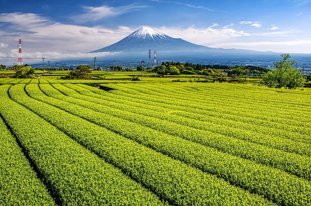 おはようございます。 新茶が美しい丘の茶畑からの富士山です!
