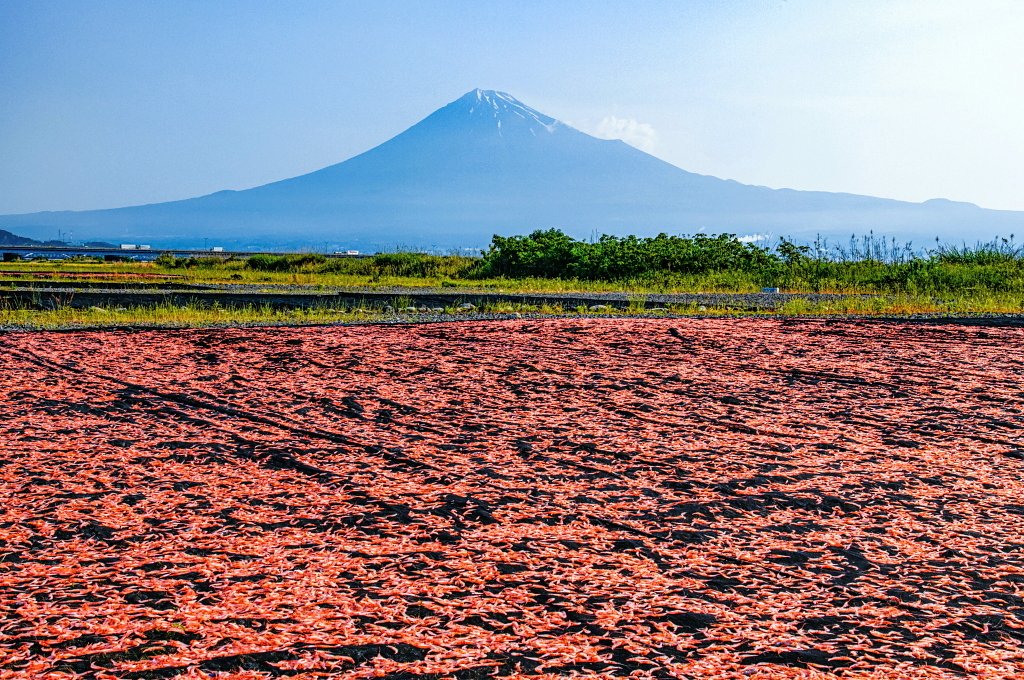 おはようございます。 桜えびの天日干しと春霞模様の富士山です!