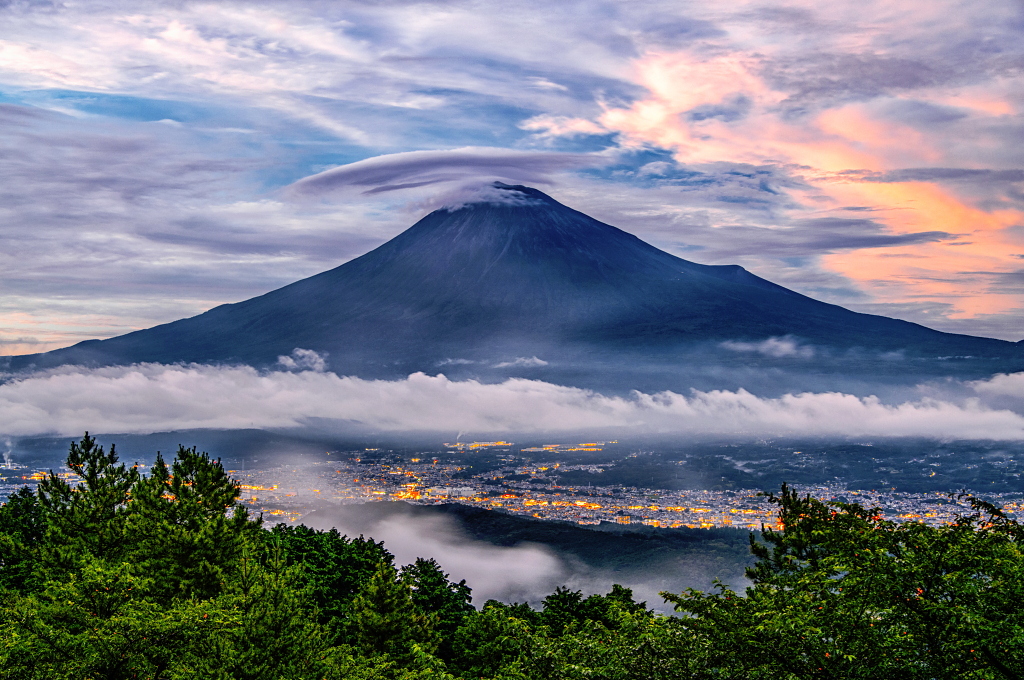 おはようございます。 天気が崩れる前に見られた見応えある笠富士と色付く雲の風景です!