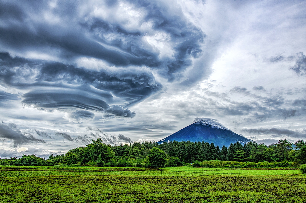 おはようございます。 不安定な空模様の中、高原地帯で見られた富士山と見応えある吊るし雲の風景です!