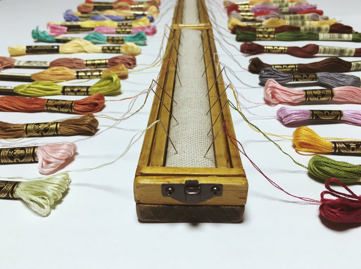 できたよ! ipnot刺繍糸パレット2。 30cm×30cmで60cm。溝部分は針の収納に。糸を何十色も使うので針山が足りず...これで解決◎