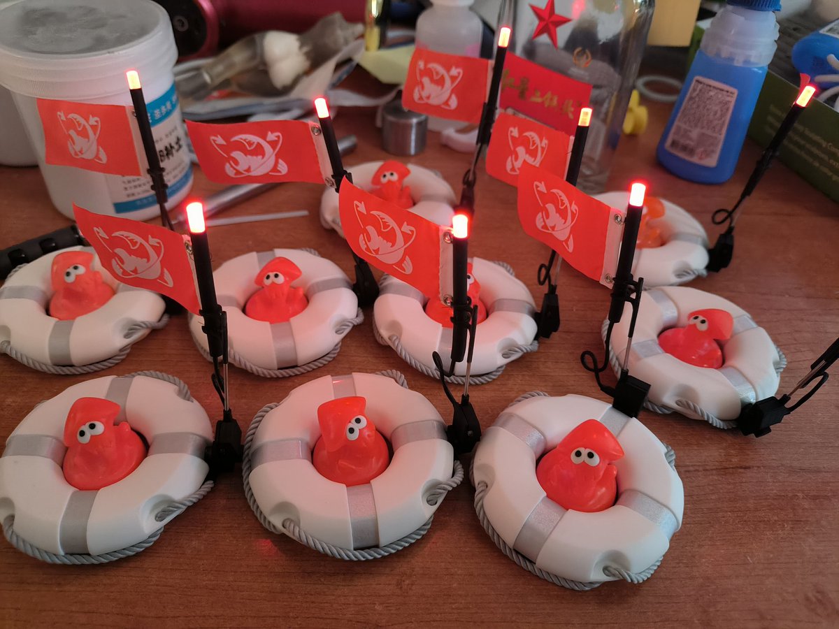 救生圈的旗子终于做成了,对讲机的电池没电了,所以信号灯是不亮的,等电池到了再拍一下