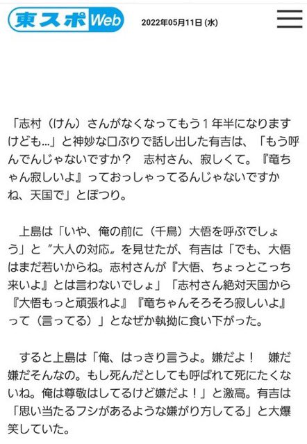 上島竜兵さんが亡くなったとき