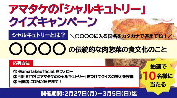 #アマタケのシャルキュトリー をつけて、クイズに答えてシャルキュトリーをゲットしよう🍖✨