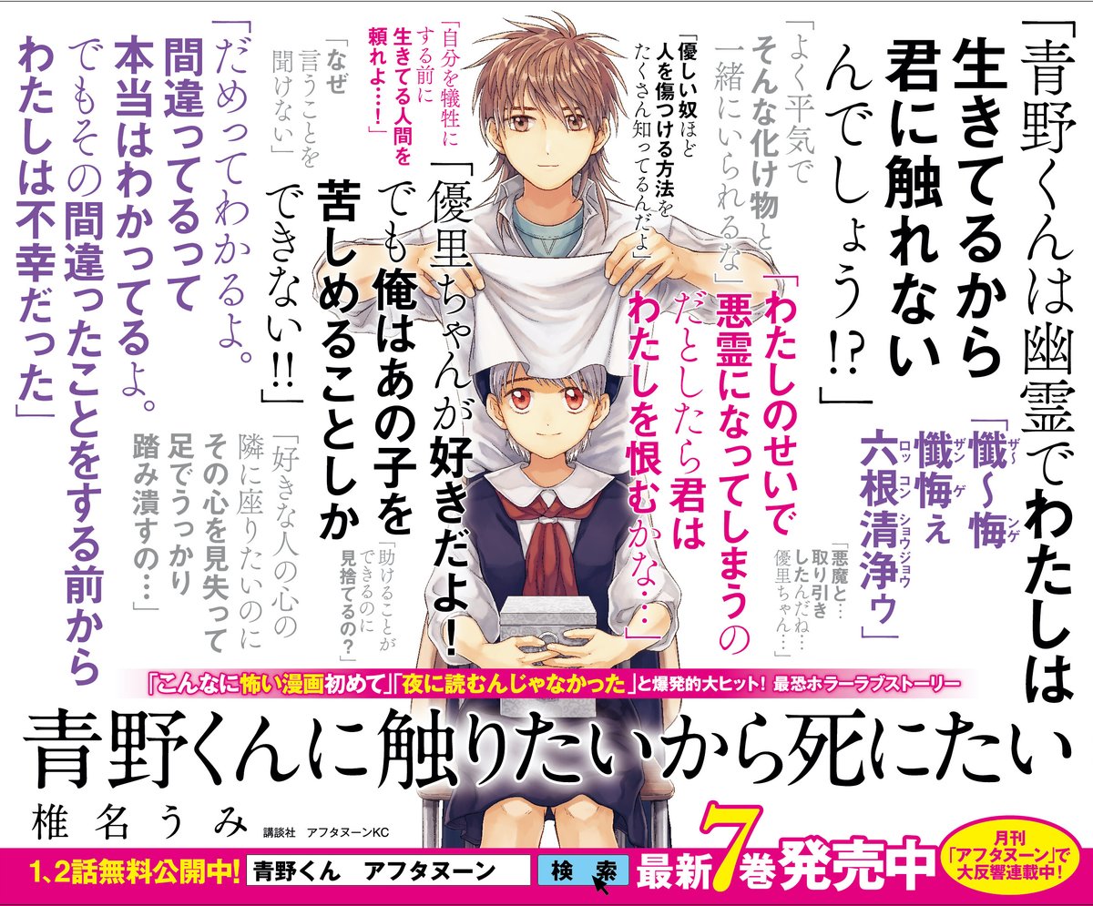 「青野くんに触りたいから死にたい」1巻が、各電子書店で期間限定無料配信中! ※書店によって終了時期が違います。ご注意ください。
