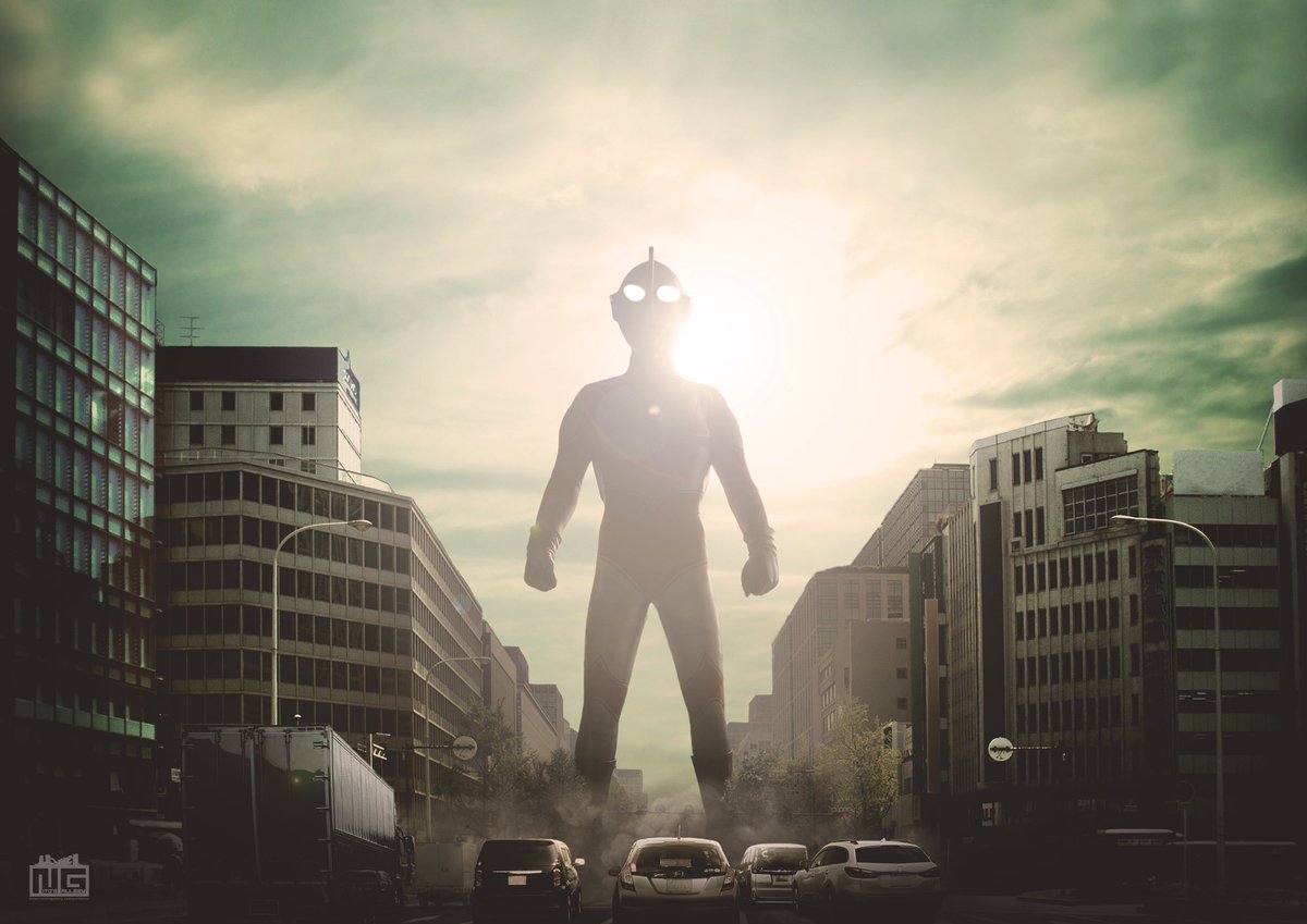 合成画像で、怪獣やヒーローをはっきり見せないというシチュエーションは雪や雨霧以外に、逆光でシルエットだけにしてしまうというのもやったことがある。これはとても神秘的な画像になった。