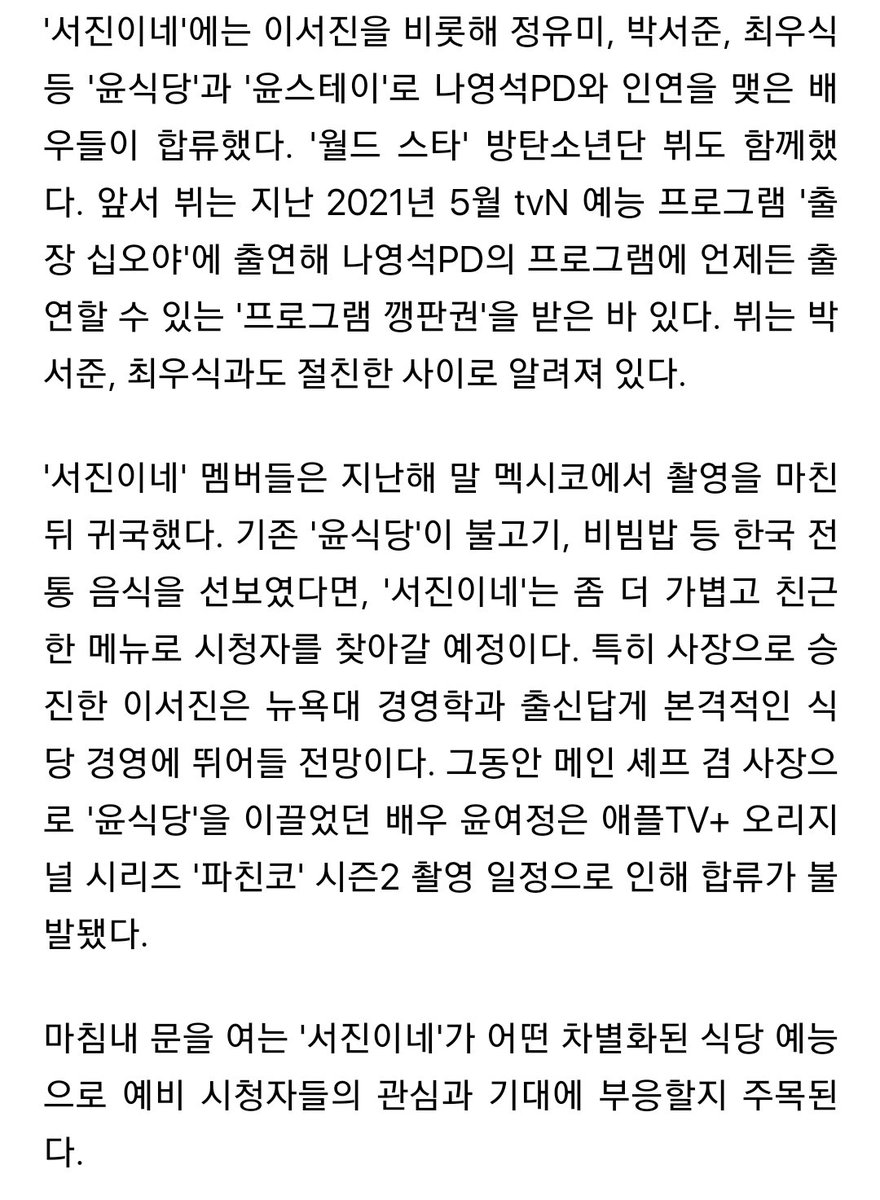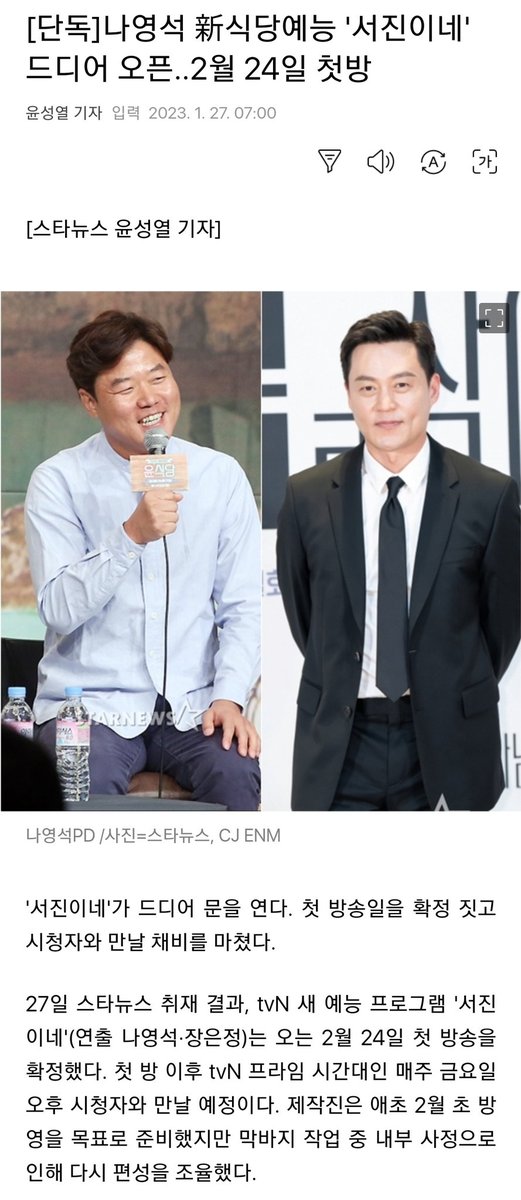 "27์ผ ์คํ๋ด์ค ์ทจ์ฌ ๊ฒฐ๊ณผ, tvN ์ ์๋ฅ ํ๋ก๊ทธ๋จ '์์ง์ด๋ค'(์ฐ์ถ ๋์์ยท์ฅ์์ )๋ ์ค๋ 2์ 24์ผ ์ฒซ ๋ฐฉ์ก์ ํ์ ํ๋ค."